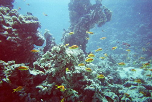 Der Haremsfahnenbarsch bevölkert zu Tausenden die Riffkante in der Nähe von großen Korallenformationen. Ein Schwarm besteht so gut wie aus ausschließlich gelben Weibchen. Die etwas farbenprächtigeren Männchen stechen im Schwarm sofort heraus. Wenn ein Männchen stirbt, wechselt das stärkste Weibchen in der Gruppe das Geschlecht zum Männchen.