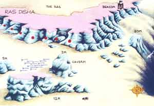zum Vergrößern bitte klicken Ort Etwa 90 min südlich von Hurghada an der Küste gelegen befindet sich eine weite Bucht mit einer Insel in der Mitte ( Abu Haschish ). Im Norden ist es begrenzt durch eine Landzunge die Ras Disha genannt wird. Es Setzt sich aus einem sandigen Plateau und hinter dem Leuchtfeuer nach Norden hin, aus einem Steilabfall zusammen. Drei Ergs liegen südlich des Riffes. Sie sind möglicherweise der beste Platz zum Tauchen.