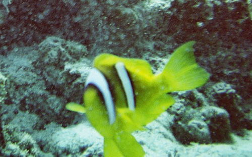 Riff. Die kleinen Fische halten sich zwischen den mit Nesselzellen bewehrten