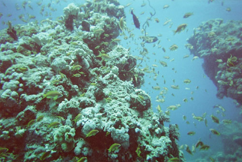 Der Haremsfahnenbarsch bevölkert zu Tausenden die Riffkante in der Nähe von großen Korallenformationen. Ein Schwarm besteht so gut wie aus ausschließlich gelben Weibchen. Die etwas farbenprächtigeren Männchen stechen im Schwarm sofort heraus. Wenn ein Männchen stirbt, wechselt das stärkste Weibchen in der Gruppe das Geschlecht zum Männchen.