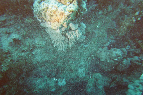 diesen Steinfisch hab ich mit einer Lampe angeleuchtet, da man ihn sonst am toten Korallenblock kaum erkennen würde.