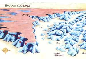 zum Vergrößern bitte klicken Ort Dieses Riff, auch bekannt als Fufuleya, liegt 60-90 Minuten von Hurghada entfernt. Es ist erkennbar durch eine Riffzunge, die auf der Ostseite von Giftun Kebir herausragt. Die Südseite dieser Zunge ist praktisch tot. Auf der Nordseite dagegen liegt ein attraktiver Hartkorallengarten, der sich nach Nordwesten hin als sich abwechselnde Korallenwände und Sandareale hinzieht. 150m nach dieser Zunge befindet sich eine wunderschöne flache Lagune.